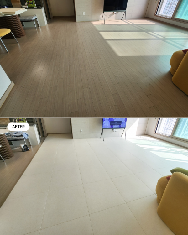 기존의 평범한 마루 바닥에서 화사하고 정돈된 프리미엄 공간으로 재탄생한